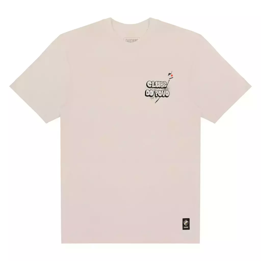 A parte frontal traz a inscrição “Clube do Povo” estampada no peito, enquanto a parte traseira se destaca com uma ilustração exclusiva desenvolvida pelo artista Calvet que representa a diversidade e o orgulho da torcida vascaína. A peça conta ainda com a etiqueta Thug Nine aplicada na manga direita e etiqueta Vasco na barra frontal, reforçando a autenticidade da colaboração.